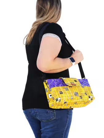 The Mini Tote features handles and a tie closure. It is reversible for two fun looks: a quilted side or a non-quilted side with a welt pocket. The Purse’s carrying strap may also be attached to the rings on the Tote.