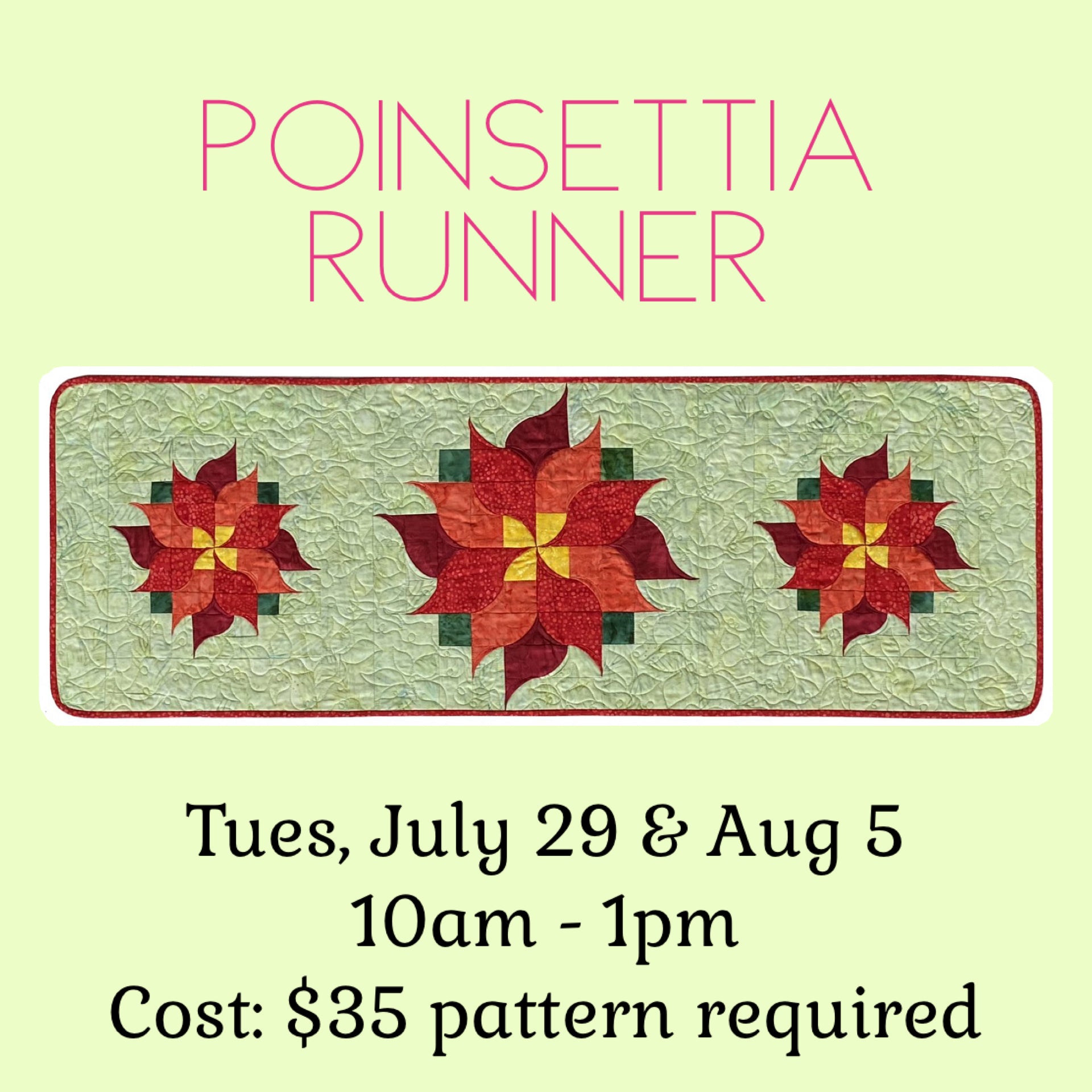 Get the look of curved piecing without stitching a single circle! Join Kelly to learn this fun technique and get ready for the holiday season at the same time! 2 Sessions Tuesday, July 29 & August 5 10am-1pm Class Fee: $35 pattern required with an additional charge Pre-cutting is required prior to class. Supply list with cutting instructions and supplies will be emailed upon paid registration. Registration is available in-store, via phone, email, or online.