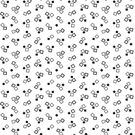 This fabric features a sophisticated white on white double border design, adorned with a scattered pattern of small, black squares and clusters of squares. The design creates a visually interesting texture that is both modern and classic, making it versatile for various sewing projects. Ideal for both B2B and B2C customers looking for a subtle yet stylish fabric, this cotton material offers excellent durability and comfort.